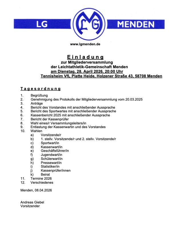Willkommen auf der Seite der LG Menden